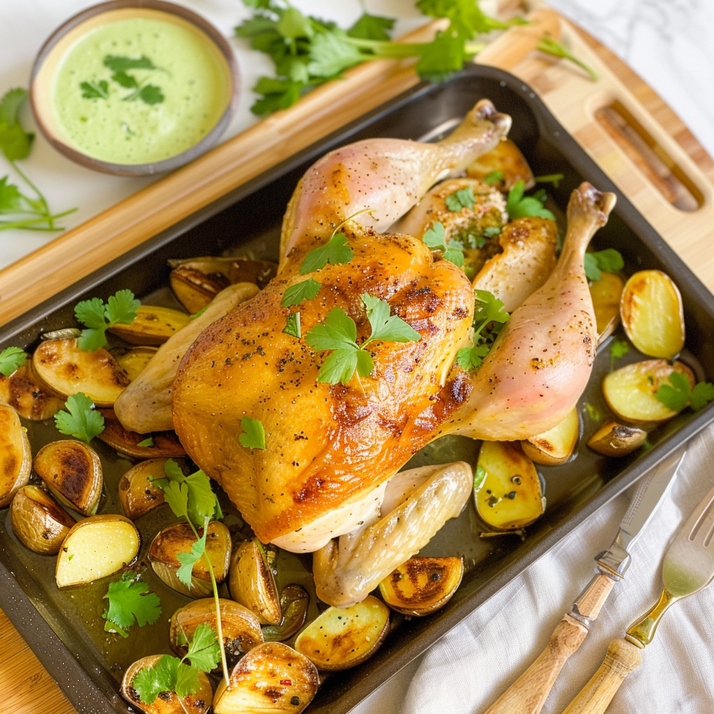 Savory Roast Chicken with Schmaltz Potatoes Recipe