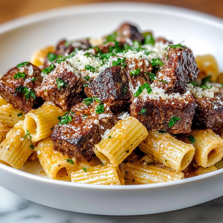 Irresistible Cajun Steak in Cheesy Rigatoni Parmesan Sauce