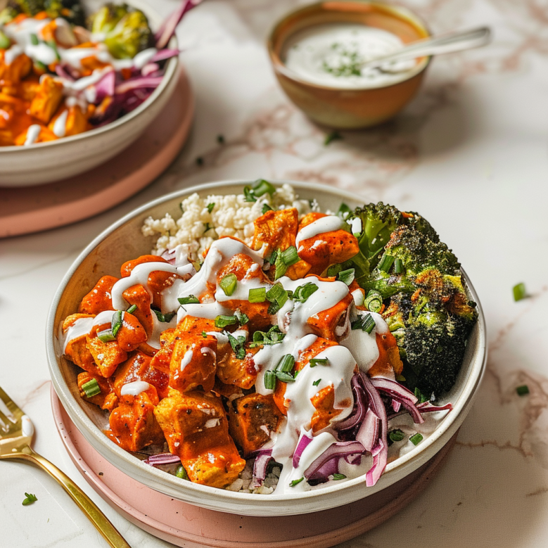 Spicy Buffalo Chicken Bowls with Cauliflower Rice Delight