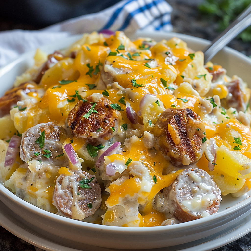Irresistible Slow Cooker Cheesy Potato Sausage Casserole