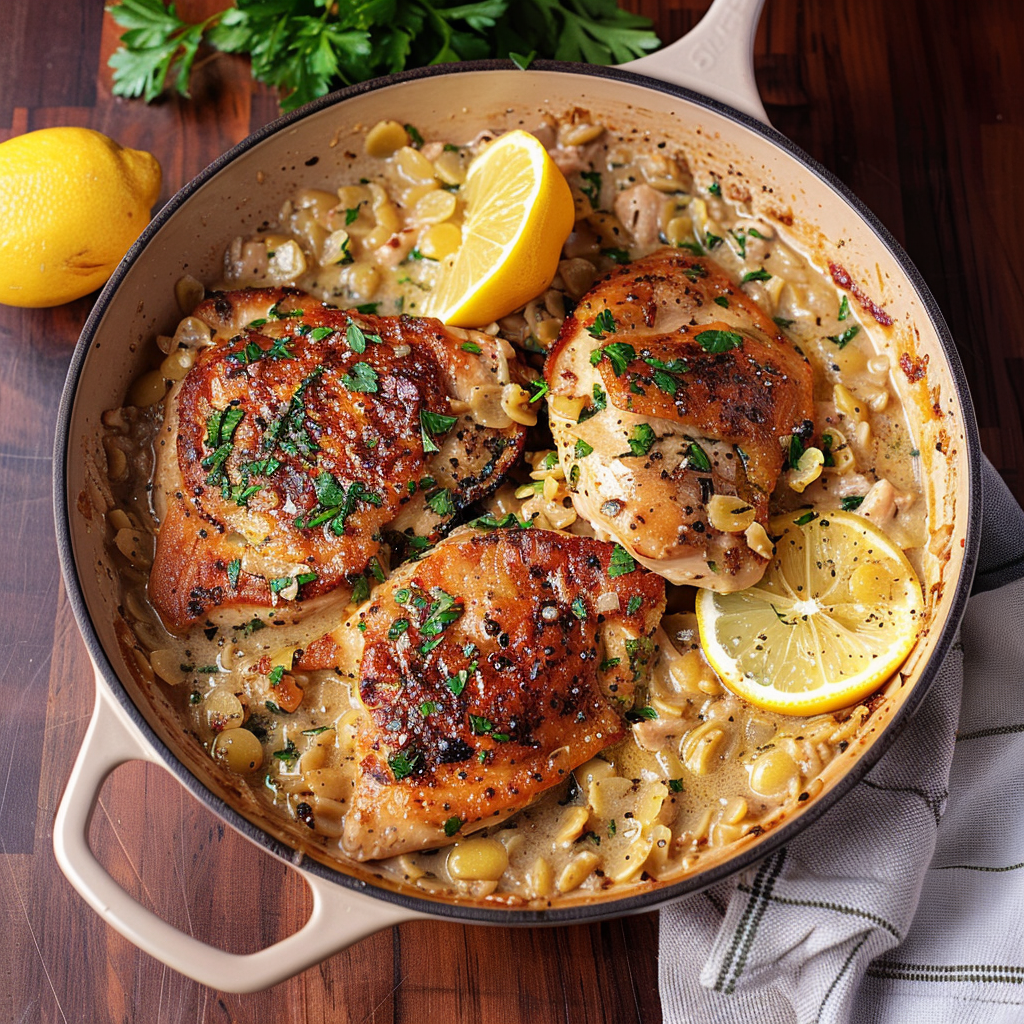 Savory Garlic Lemon Chicken Orzo Skillet Recipe