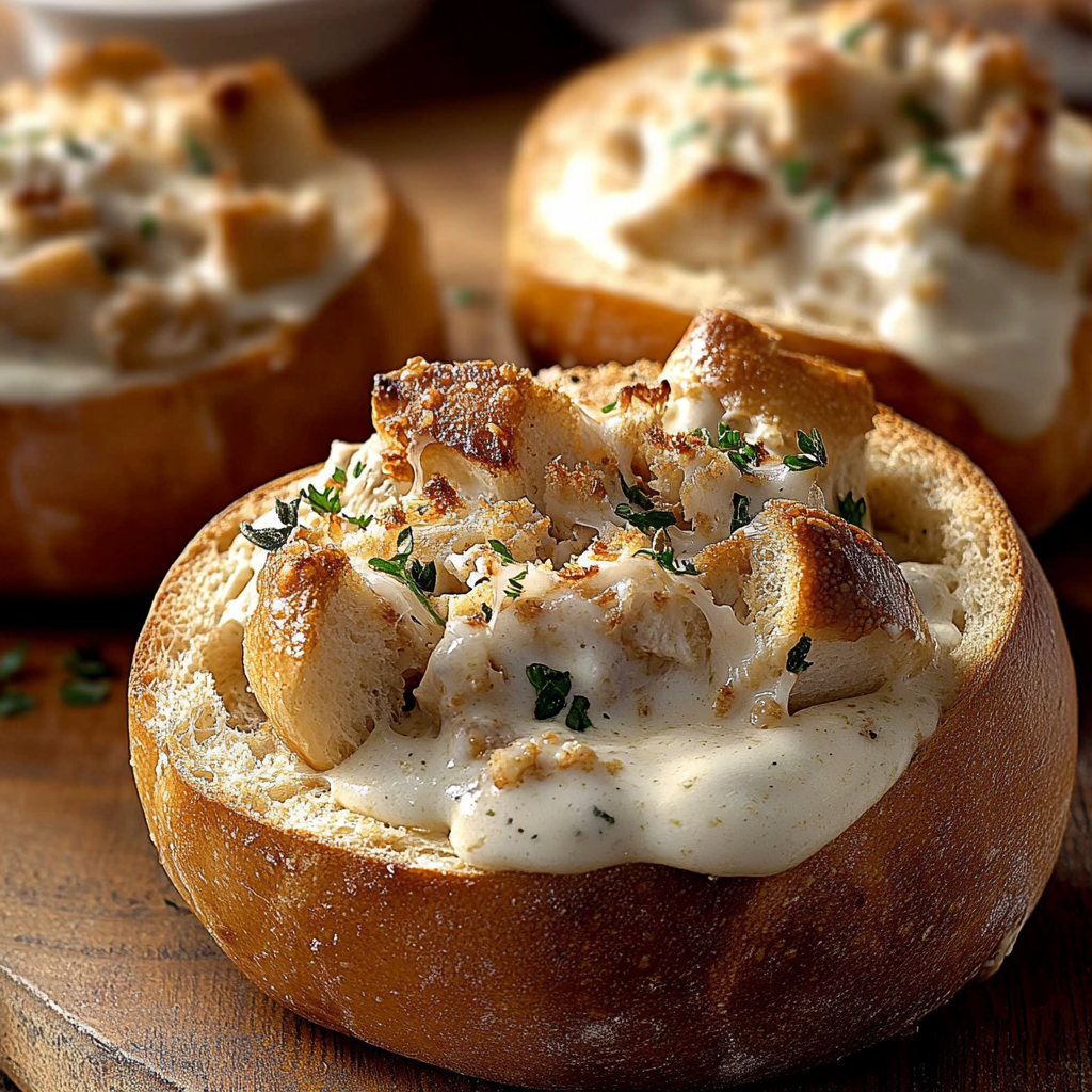 Delicious Chicken Alfredo Garlic Bread Bowls Recipe