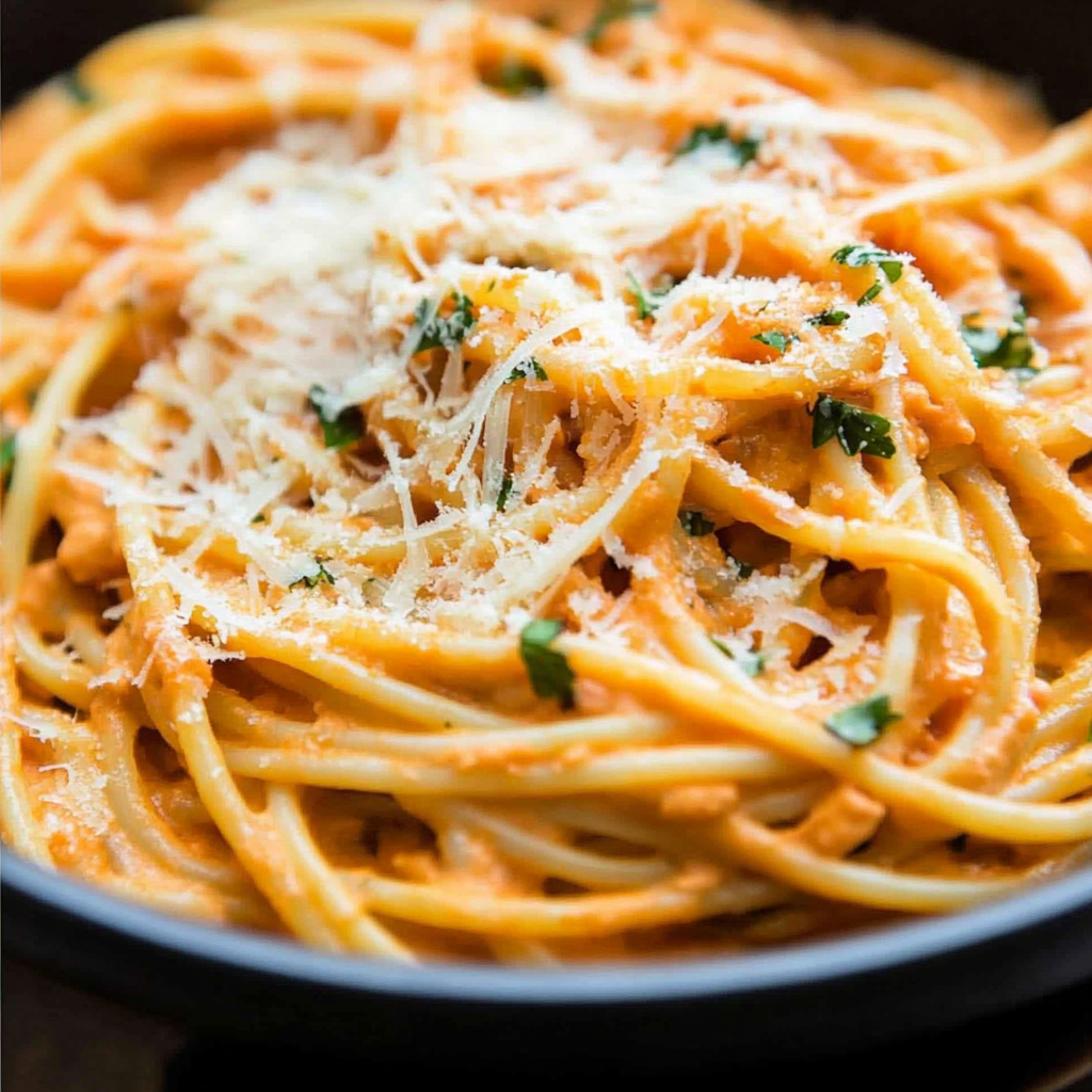 Indulge in Spaghetti with Creamy Roasted Bell Pepper Sauce