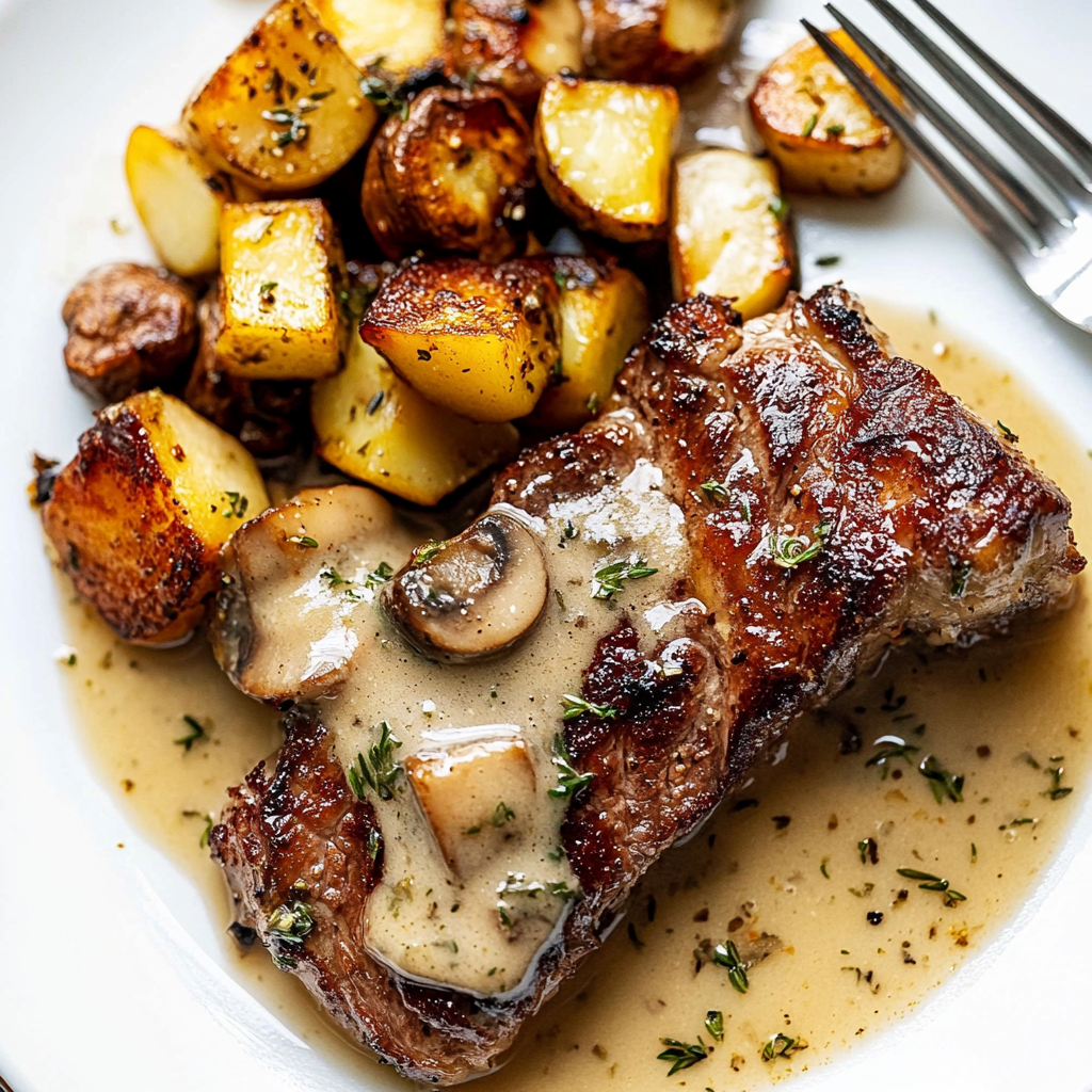 Indulge in Creamy Mushroom Steak with Garlic Thyme Butter