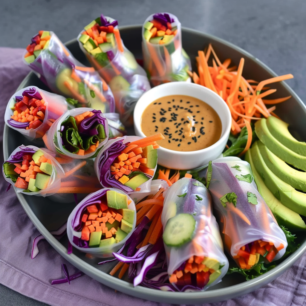 Delightful Rainbow Veggie Spring Rolls with Peanut Sauce