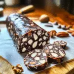 Chocolate Salami is a delectable no-bake dessert that brings together rich dark chocolate, crunchy nuts, and sweet biscuits, all elegantly shaped into a log and dusted with cocoa powder. This indulgent treat is not only visually striking but also incredibly easy to prepare, making it perfect for birthdays, holidays, or simply satisfying a chocolate craving. Each slice unveils a delightful combination of textures and flavors that will impress your family and friends.