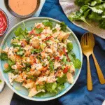 Bang Bang Chicken Salad is a vibrant dish combining tender chicken, fresh vegetables, and a creamy sauce that gives it a delightful kick. The salad typically features shredded chicken, crisp lettuce, cucumbers, and carrots. The unique “bang bang” sauce, made from mayonnaise and sweet chili sauce, adds a spicy yet sweet flavor. This dish is perfect for a quick lunch or dinner and can be served on its own or as a side.