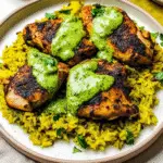 Finally, transfer everything onto plates—rice first followed by that succulent chicken drizzled generously with more green sauce. Garnish with extra cilantro if you’re feeling fancy!