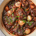 Beef Bourguignon de Noël is a festive twist on the classic French stew featuring tender beef braised in red wine with aromatic vegetables and herbs. It’s perfect for holiday gatherings or cozy family dinners.