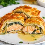 - Flaky pastry meets rich salmon, making dinner feel like a celebration.