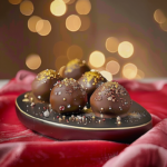 - Dust truffles with cocoa powder first to prevent sticking, then coat them with gold glitter.