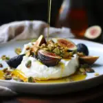 Feel free to customize your Burrata with Toasted Pistachios & Honey by incorporating seasonal ingredients! Swap out the honey for maple syrup for a unique flavor twist or add fresh herbs like basil or mint for an aromatic touch. For a spicy kick, sprinkle some red pepper flakes on top before serving. The beauty of this recipe is its versatility; make it your own!