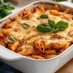 For perfect pasta, cook it al dente according to package instructions before adding it to your baking dish. It’ll finish cooking in the oven while absorbing all those delicious sauce flavors without becoming mushy.