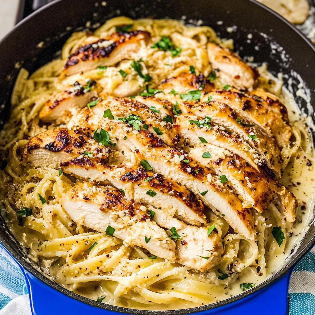 Garlic Parmesan Chicken Pasta is a creamy, indulgent dish that combines tender chicken breasts with perfectly cooked pasta enveloped in a rich garlic-infused sauce. This delightful meal is both quick and easy to prepare, making it perfect for busy weeknights or special gatherings. Each bite bursts with aromatic flavors of garlic and nutty Parmesan, garnished with fresh parsley for an added touch of brightness. Get ready to impress your family and friends with this delicious comfort food that’s sure to become a staple on your dinner table.