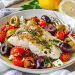 Low-Calorie Sheet Pan Cod with Olives and Feta is a dish that sings to your senses; imagine the flaky perfection of cod, bathed in a zesty olive oil and crowned with tangy feta. The rich flavors mingle with the vibrant colors of olives, creating a masterpiece that’s as pleasing to the eye as it is to the palate.