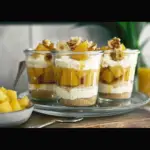 A Mango Macadamia Trifle is a layered dessert combining luscious mangoes, creamy custard, light whipped cream, and crunchy macadamias over sponge cake. It’s visually stunning and packed with flavor.