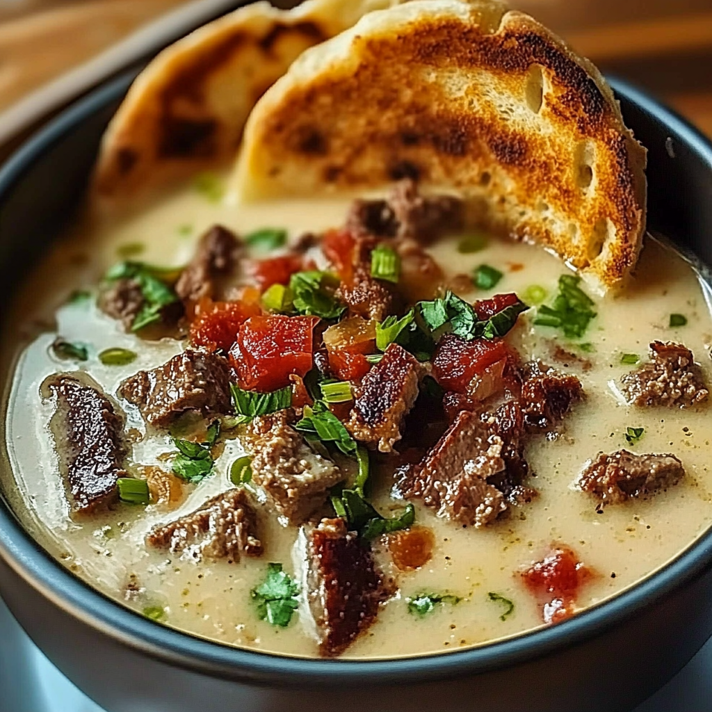 In summary, Philly Cheesesteak Soup brings together all the beloved flavors of the iconic sandwich into a warm and hearty dish. With simple ingredients like sliced beef, fresh vegetables, and creamy cheese, this recipe is both easy to prepare and satisfying. Whether you serve it on chilly nights or at gatherings with friends, this soup is sure to impress everyone at your table. Enjoy making this delightful twist on a classic comfort food!