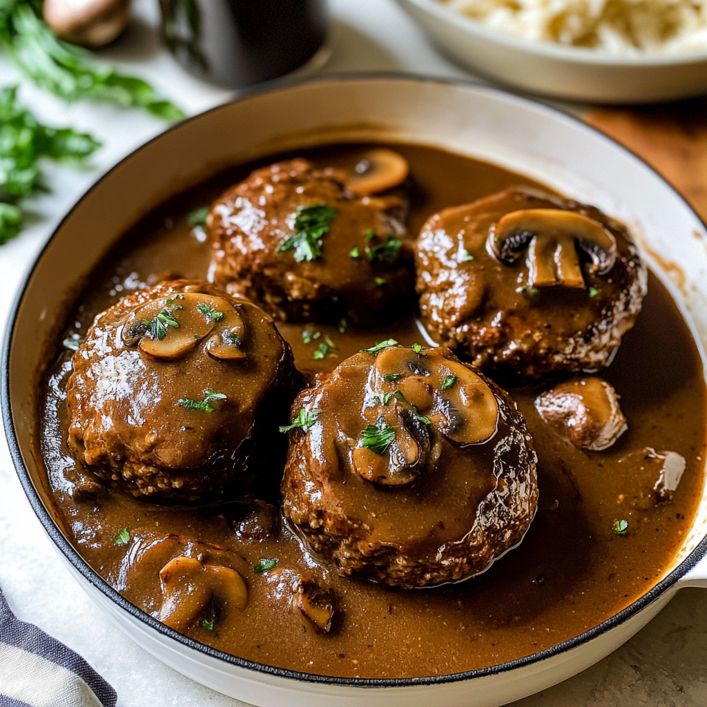 Salisbury steak is a comforting classic that brings together juicy ground beef patties and a rich mushroom gravy, making it perfect for family dinners or cozy weeknights. Easy to prepare, this dish evokes feelings of nostalgia and warmth with every bite. Serve it alongside creamy mashed potatoes or buttery noodles for a hearty meal everyone will love.