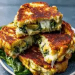 Spinach Artichoke Grilled Cheese is a delicious blend of creamy cheese, fresh spinach, and savory artichoke hearts, all nestled between perfectly toasted bread. This elevated twist on a classic grilled cheese sandwich is ideal for lunch, dinner, or as a delightful snack. With its gooey filling and crispy exterior, every bite offers a burst of flavor that will satisfy your cravings and impress your guests.