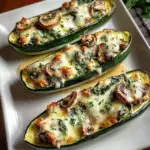 Spinach, Mushroom, and Ricotta Stuffed Zucchini Boats are a delicious and healthy dish made by hollowing out zucchinis and filling them with a savory mixture of sautéed spinach, mushrooms, and creamy ricotta cheese. This recipe is perfect for those looking to enjoy a low-carb meal that’s packed with flavor. The combination of fresh vegetables and the creaminess of ricotta creates a satisfying texture that complements the tender zucchini.