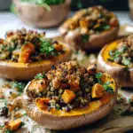 Stuffed Butternut Squash is a delightful autumn dish that combines the natural sweetness of roasted squash with a savory, protein-packed filling. Each bite offers a harmonious blend of flavors and textures, making it perfect for cozy dinners or festive gatherings. With its stunning presentation and versatility, this recipe is sure to impress your guests and become a seasonal favorite in your kitchen.
