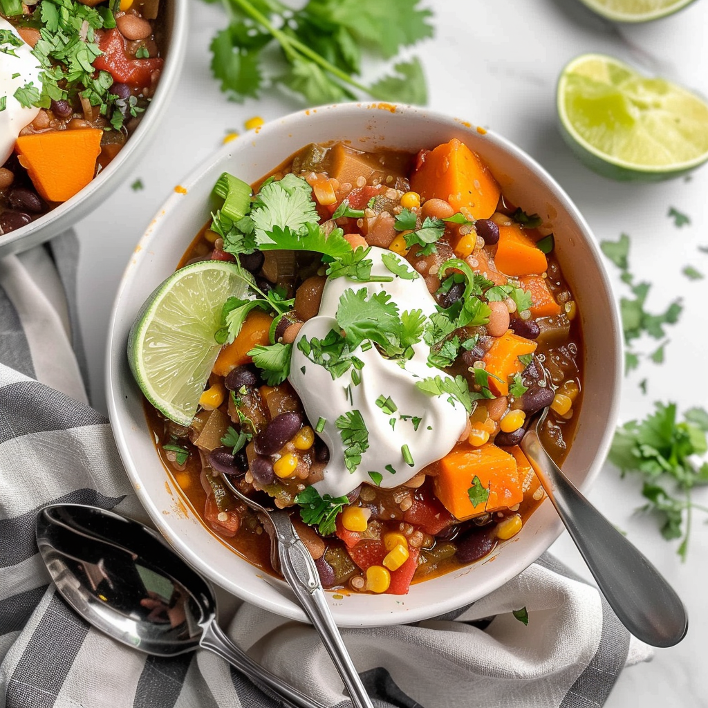 Sweet Potato & Black-Bean Quinoa Chili is packed with nutrients like fiber, vitamins A and C from sweet potatoes, along with protein from black beans and quinoa. This combination not only fills you up but also provides lasting energy without weighing you down.