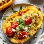 Tomato Feta Baked Spaghetti Squash pairs wonderfully with various side dishes. For a complete meal, consider serving it alongside a fresh green salad or grilled vegetables. If you prefer protein, grilled chicken or shrimp also complements this dish beautifully. The light yet flavorful profile of this baked spaghetti squash makes it versatile enough to adapt to many different sides.