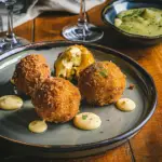 Truffle & Parmesan Arancini with Garlic Aioli are the ultimate comfort food, featuring crispy, golden balls filled with creamy Arborio rice and infused with luxurious truffle oil and rich Parmesan cheese. Paired with a zesty garlic aioli, this Italian delicacy is perfect for impressing guests at dinner parties or satisfying your cravings during a cozy night in. Simple to make yet elegant enough for any occasion, these arancini will leave everyone asking for the recipe!