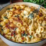 Tuscan Mac and Cheese combines classic mac and cheese elements with vibrant Tuscan flavors. Essential ingredients include pasta, typically elbow macaroni or cavatappi, a creamy cheese sauce made from cheddar and mozzarella, and fresh ingredients like sun-dried tomatoes, spinach, and Italian herbs. You might also want to add garlic for depth of flavor and a hint of red pepper flakes for a spicy kick. This dish captures the essence of Tuscany while maintaining comfort food appeal.