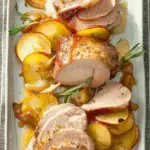 This Pear & apple-butter glazed pork roast is a showstopper that combines succulent pork with a sweet and tangy glaze, creating a dish that’s perfect for any occasion. The tender meat, infused with fragrant garlic and fresh thyme, makes this recipe a favorite for family gatherings or cozy dinners. Let the delightful aromas fill your kitchen as you prepare to serve this visually stunning and deliciously satisfying meal.