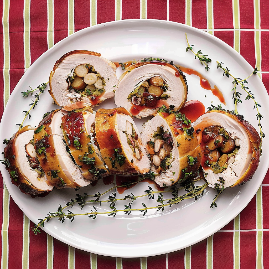 Feel free to swap out traditional stuffing for something unique like spinach and feta or wild rice. For an extra zing, sprinkle some cranberries or nuts into the mix. Personalize this turkey roulade to make it distinctly yours.